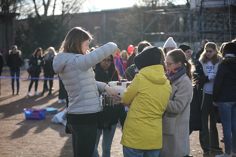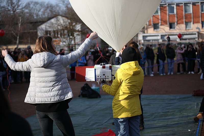 Hoch hinaus geht es beim Projekt „Forschungsmission Stratosphärenballon – Physik am Rande zum Weltall“ des St. Dominikus Mädchengymnasiums Karlsruhe und der Pädagogischen Hochschule Karlsruhe (PHKA). Schülerinnen sowie Lehramtsstudierende der Physik haben am 29. Januar gegen 10.30 Uhr auf dem Engländerplatz in Karlsruhe einen mit 5000 Litern Helium gefüllten Ballon von der Größe eines Kleinwagens in die Stratosphäre aufsteigen lassen. An Bord: eine Forschungssonde mit rund zwei Kilogramm Messausrüstung, um unter anderem Temperatur, Luftdruck, radioaktive Strahlung und CO2-Gehalt zu erfassen.
