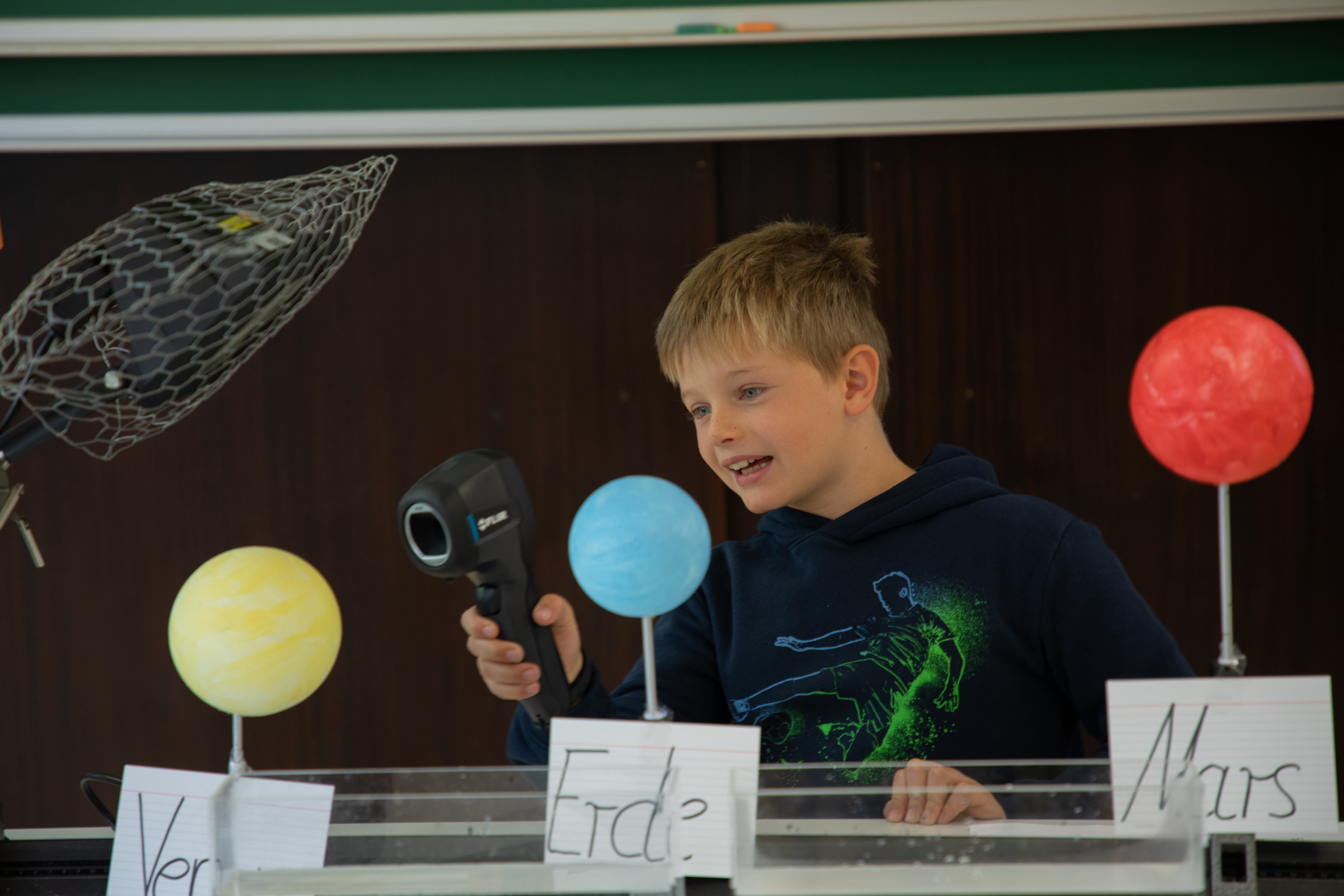 Darüber hinaus werden viele Experimente durchgeführt, um Einflussfaktoren des Klimas auf der Erde zu untersuchen. Anhand von Modellen und Experimenten erarbeiten die Schüler:innen Konzepte zur Erderwärmung, Wirkung von Treibhausgasen oder dem Strahlungsvermögen von Oberflächen. Die Erkenntnisse werden genutzt, um Beobachtungen aus den Klimadaten zu begründen. Der Projekttag dauert ca. 5 Zeitstunden.