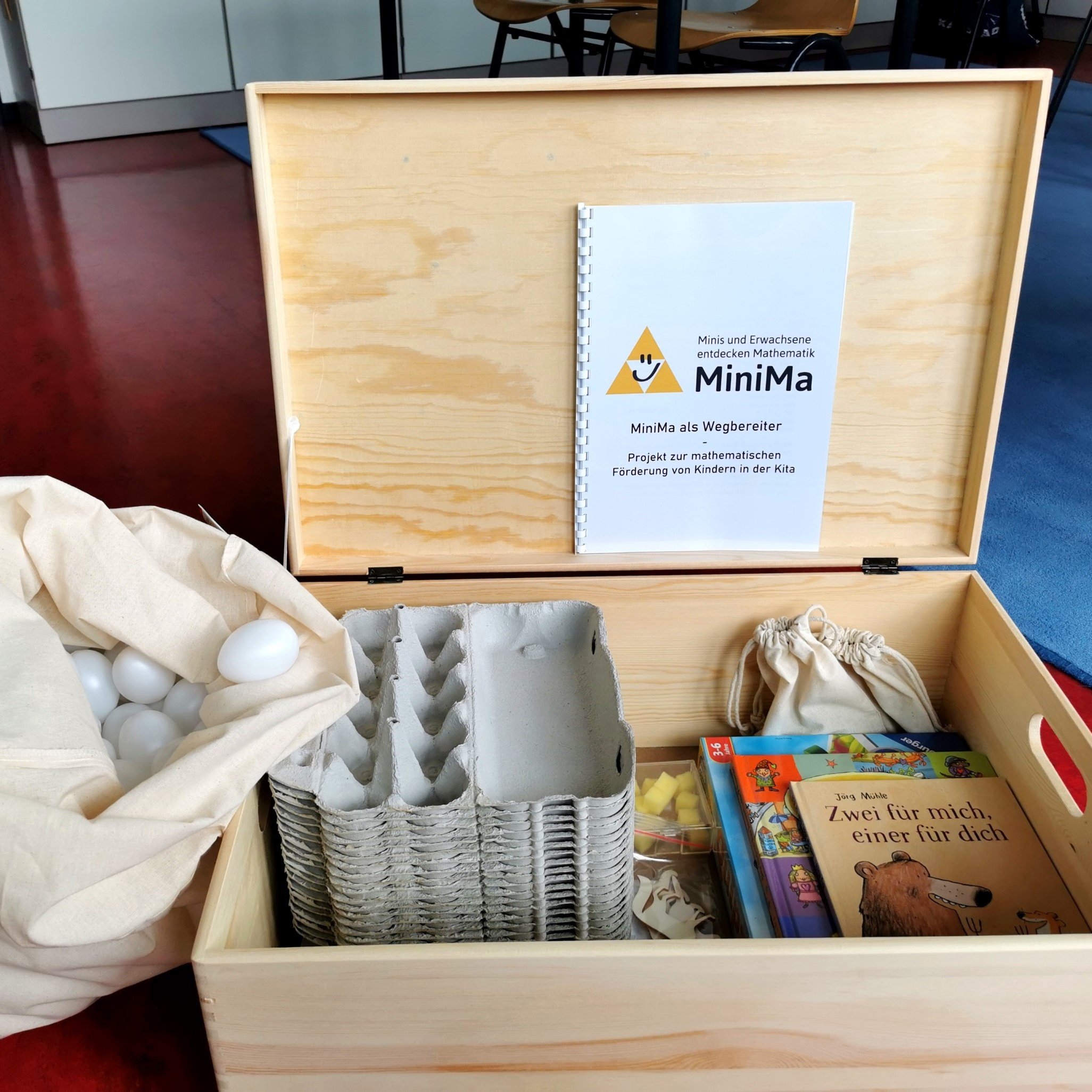 Während der Corona-Pandemie mussten die Besuche von Kindergruppen mit ihren Lernbegleitungen in die MachMitWerkstatt MiniMa entfallen. Damit fehlte ein besonderes Angebot, das hilft den Übergang in die Grundschule vorzubereiten. Das Pilotprojekt „MiniMa als Wegbereiter“ von Prof. Dr. Christiane Benz brachte im Frühsommer 2021 elementardidaktische Forschung und bewährte Umsetzungsideen aus der PHKA direkt in die Einrichtungen. Neben einem Online-Workshop für die pädagogischen Fachkräfte gab es für die beteiligten Kitas Materialkisten und Anleitungen für konkrete Spielideen zur gezielten mathematischen Förderung. So konnte die Zeit bis zum Schuleintritt optimal genutzt und verlorene Bildungschancen nachgeholt werden.